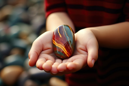 A person holding a stone in their hands. This image can be used to represent strength, determination, or the concept of overcoming obstacles.