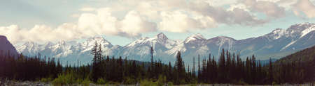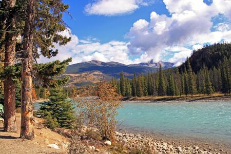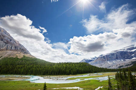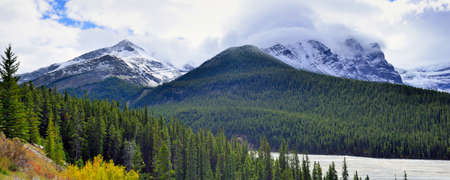 Beautiful high mountains of the Canadian Rockies and an alpine river along the Icefields Parkway between Banff and Jasper