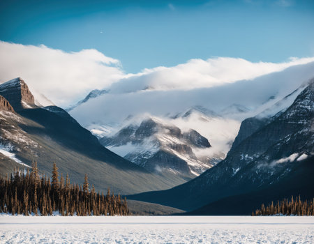 Majestic mountain peak in Alberta, tranquil scene, snowy landscape generated by artificial intelligence