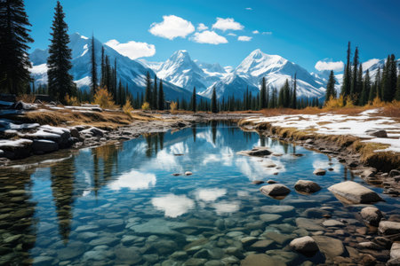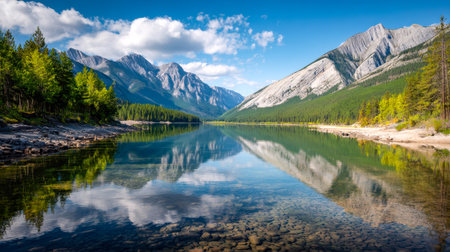Serene landscape in the rocky mountains of Canada., generative AI