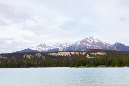 Mountains and lake in Jasper National Park, Alberta, Canada.