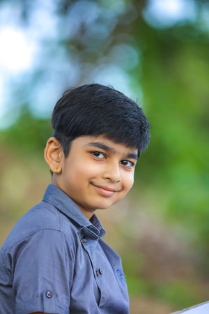 Portrait of Indian Little Boy Posing to Camera with Expression