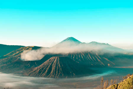 Foggy morning view of mt. Bromo at sunrise,, Java, Indonesia