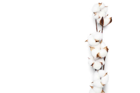Cotton flower branch isolated on white background. Top view.