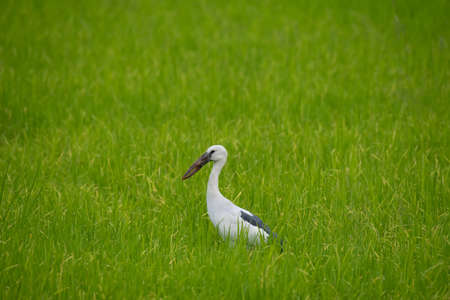 Anastomus oscitans bird in rice field.