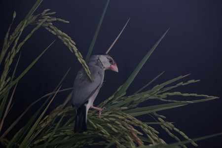 Zebra Finch in the rice field at night,Thailand.