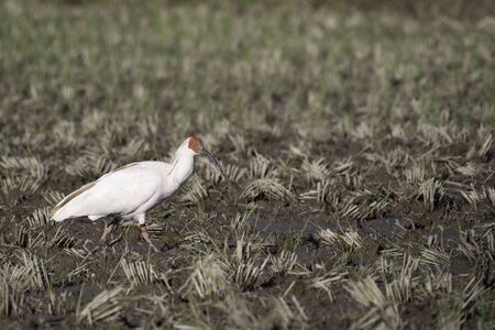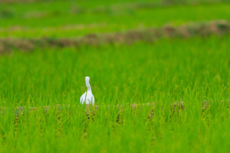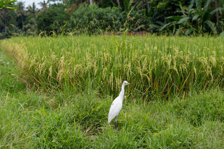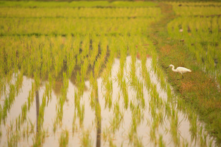 White heron on rice field