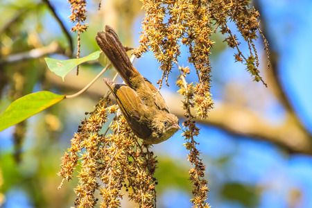 closeup shot of a beautiful Horsfield's Babbler in nature