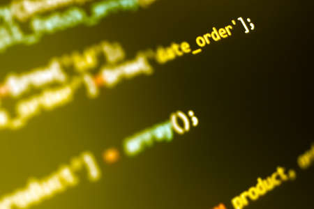Information technology concept. Coding programmer language script text on screen monitor display. Programmer occupation job. Selective focus.