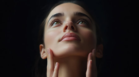 Close-up portrait of a beautiful young woman with clean skin on a dark background