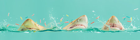 Kaleidoscopic shark fins appearing as abstract art, blending reality and illusion
