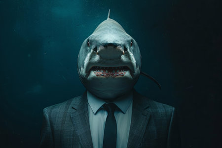 Businessman wearing suit with shark head