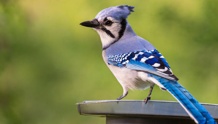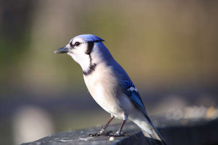 Close up shot of Blue Jay bird on the fence