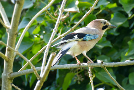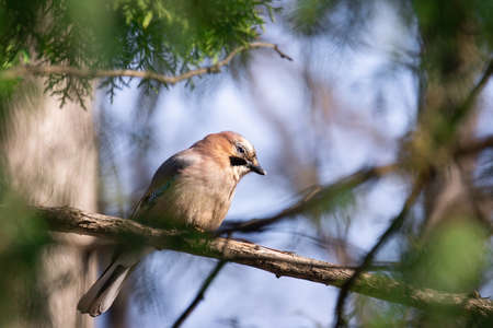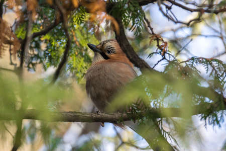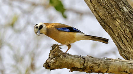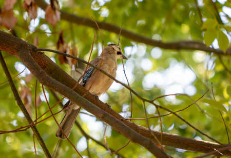 Eurasian jay (Garrulus glandarius) nicely colored jay sitting on the branches