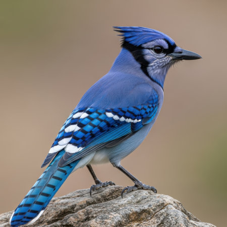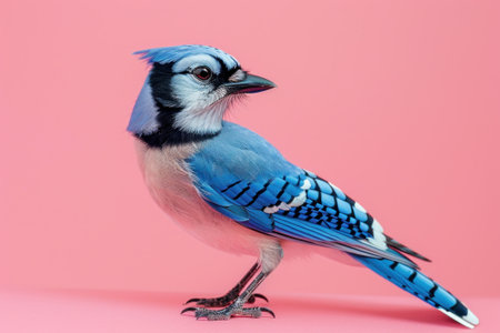 Blue Jay, isolated on pastel background, stock photographic style