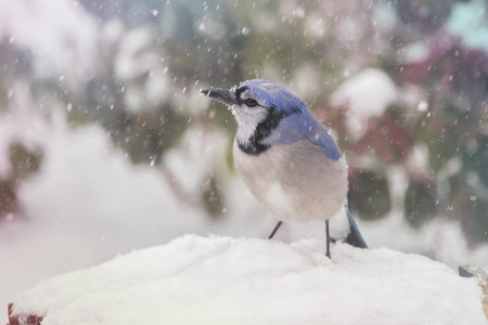 Blue Jay Cyanocitta cristata standing in the snow taken in Maryland during the Winter