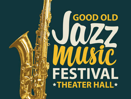Vector poster for a jazz music festival with a golden saxophone and inscriptions on a black background. Suitable for music banner, flyer, invitation, ticket in retro style