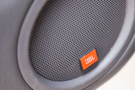 ROSTOV-ON-DON, RUSSIA - CIRCA OCTOBER 2019: Close-up logo of JBL