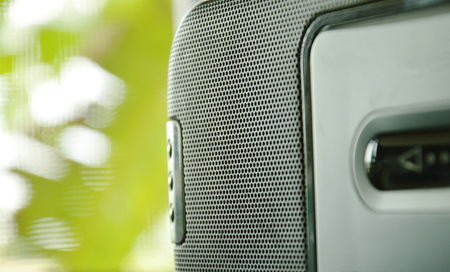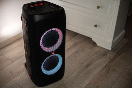 Closeup of black premium loudspeaker for music and home theater system with color mood and tone style