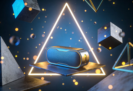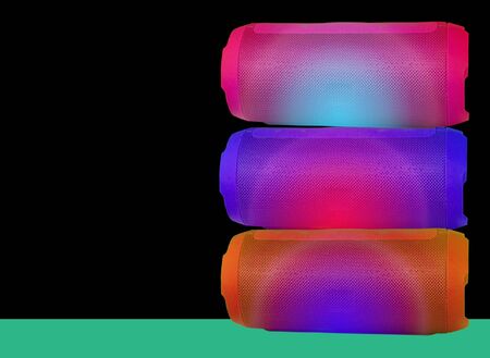 speaker system on a black background in blue and orange lighting, 3d illustration
