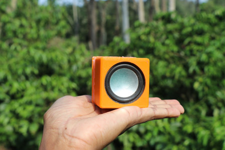 speaker held in the hand made from 3d printed frame. 3D printing for real world applications