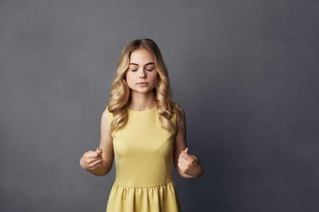 beautiful woman in a yellow dress fun cropped view fashion