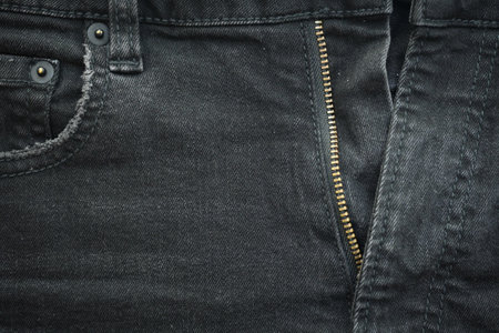 Denim jeans fabric texture background with zipper for clothing, fashion design and industrial construction concept.