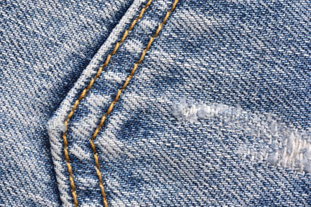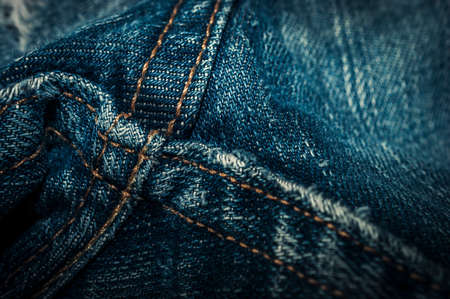 Denim jeans texture pattern, Close up of pocket stitch fabric detail background.