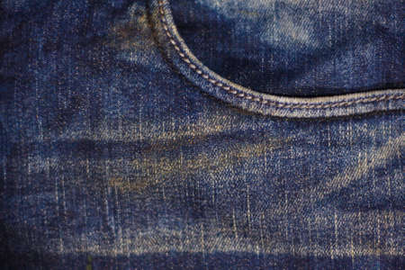 Details of denim trousers. Pockets and seams on denim. Old blue denim. The texture of the fibers of the denim. Background.