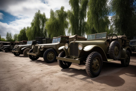 wartime vehicles of different countries and variations in the frame, body and engine parts, created with generative ai