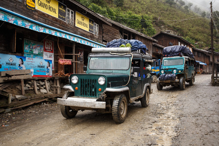 CHIN STATE, MYANMAR - JUNE 23 2015: Trucks in village popular for selling apples in the recently opened to foreigners area of Chin State - western Myanmar (Burma)