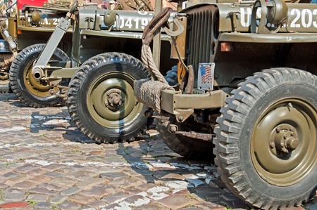 PRAGUE, CZECH REPUBLIC - APRIL 29, 2011: Detailed view of vintage American Jeeps in the row.