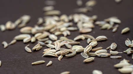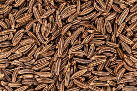 Closeup detail of caraway seeds meridian fennel - Carum carvi shot from above, image width 23mm