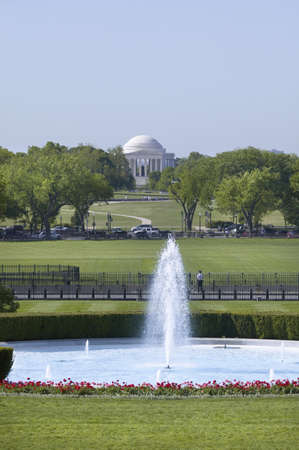 Water fountain on South Lawn of White House with the Jefferson Memorial in the background, White House, Washington, DC