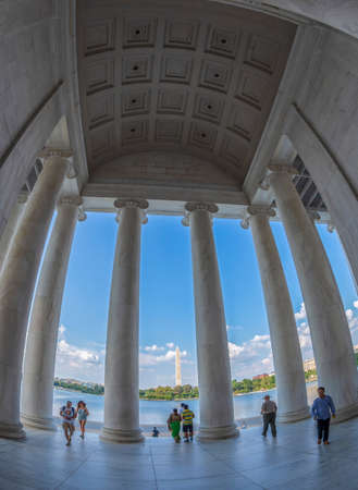 WASHINGTON DC, USA - SEPTEMBER 5, 2018: Large angle view with columns and George Washington Memorial in background, from Thomas Jefferson Memorial.