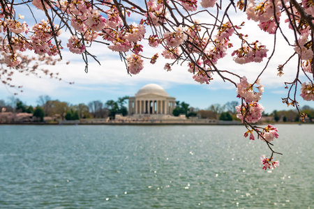 Washington, DC at the Tidal Basin and Jefferson Memorial during spring.