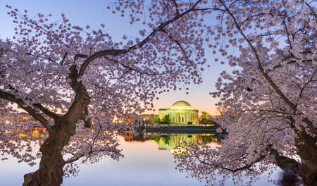 Sun rise view of the Thomas Jefferson Memorial with cherry blossom at Washington DC