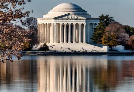 cherry blossoms framing the jefferson memorial, created with generative ai