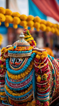 Ratha Yatra, Lord Jagannath festival, traditional Indian treats, national dishes and sweets, street carnival, festive fair, yellow marigolds