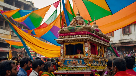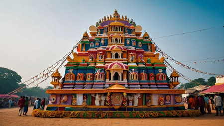 Rath Yatra Festival - Modern Image of People and India Temple Celebration, Space for Text