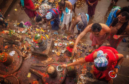 Hinduistic offerings at Kedar Ghat in Varanasi/Uttar Pradesh/India.