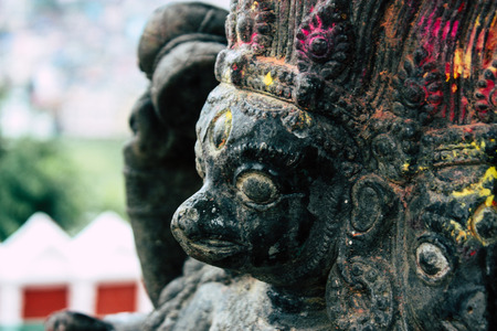 Kathmandu Nepal August 23, 2018 View of the temple located at the bottom of the Monkey temple in Swayambhunath district in Kathmandu in the evening