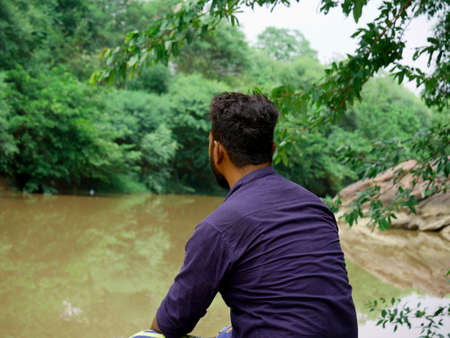 KODAIKANAL, INDIA - JUNE 29TH, 2015: A man siting on the bridge top