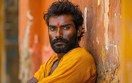 Teej festival - Colorful Couple in Traditional Clothing Celebrating, Space for Text