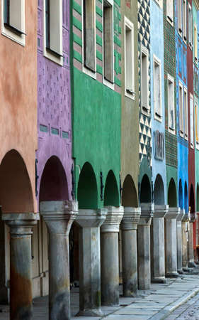 Facades of colorful old houses in the historical town square of Poznan, Poland