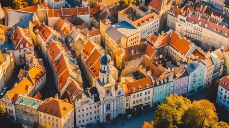 Generative AI : Aerial Top Down View of Church Of Our Lady Before Tyn In Old Town Prague Czech Republic