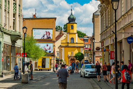 Olsztyn, Poland, July 12: Street of Old Town on July 12, 2020 at Olsztyn, Poland. Olsztyn is a city on the Lyna River in northeastern Poland.