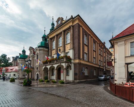 Bougszow-Gorce, Poland - July 7 2020: Streets of small market square in Boguszow-Gorce