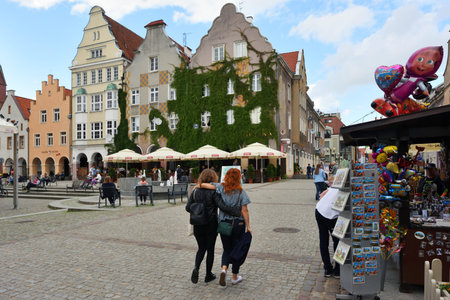Olsztyn, Poland, July 12: Street of Old Town on July 12, 2020 at Olsztyn, Poland. Olsztyn is a city on the Lyna River in northeastern Poland.