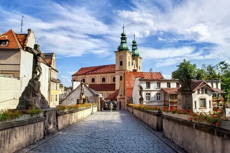 Klodzko, Poland, September 3, 2025: St. John's Bridge and the Church of Our Lady of the Rosary. The Franciscan Monastery in Klodzko, Poland.